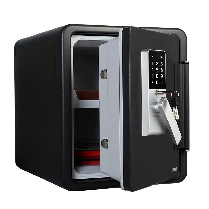 The 4091RE1T-BD encompasses modern design and unique insulation technology to provide fire and water protection for important documents and valuable belongings. A sleek touchscreen digital lock controls access and door is secured with heavy duty hinges and solid bolts. The safe comes with a UL certification for fire protection and a seal provides protection for its contents against water damage. Fit your belongings and documents inside the 0.91 cubic feet / 25 liters of interior space. Other lock types and size options are available.
